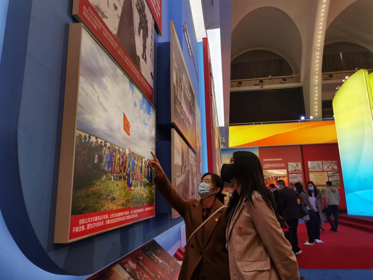 ????十年輝煌成就鼓舞人心,中華民族光明前景令人奮進(jìn)。團(tuán)員青年們邊走邊看,通過一幅幅珍貴生動的圖像照片、一件件精巧美觀的實(shí)物、一個個壯觀宏偉的模型,配合現(xiàn)代高科技的聲、光、電、網(wǎng)絡(luò)組合的強(qiáng)烈體驗(yàn)感,深刻感受到黨的十八大以來黨和國家事業(yè)的偉大成就、偉大變革,深刻體會到新時代以習(xí)近平同志為核心的黨中央的正確指引,深刻體會到廣大人民群眾眾志成城、勇攀高峰的優(yōu)秀品質(zhì),贊嘆著、自豪著、感動著、振奮著。