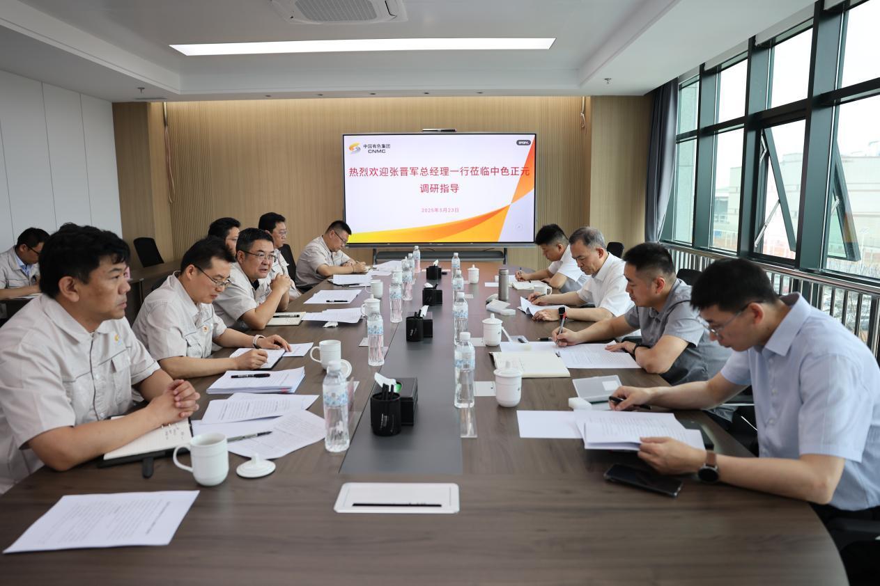5月23日,中國有色集團黨委副書記、總經理張晉軍到中色正元開展工作調研,督導推進深入貫徹中央八項規定精神學習教育和巡視整改工作,現場調度中色正元“作風建設年”“科技賦能新材料”等專項行動和其他生產經營重點工作。
